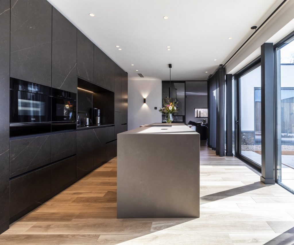 Een ander detail dat bijdraagt aan het luxe gevoel is de afwerking van de binnenkasten van de keuken. Waar vroeger een wit kastinterieur de standaard was, kunt u nu vaak de corpus in een kleur naar keuze krijgen, bijvoorbeeld antraciet of een houtdecor, zodat de binnenkant mooi aansluit bij de rest van het design. Die consistente kleur doorvoering, zelfs aan de binnenzijde, geeft de keuken een exclusieve uitstraling.
